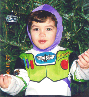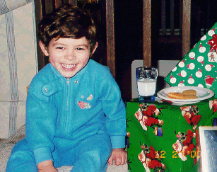 | (Left) Cameron "Buzz Lightyear" Fassett can jump from his crib to infinity and beyond according to Jason's Uncle Ben. (Center) Some treats for Santa and his reindeer, Christmas 2000. (Right) A fearless Cam and his mom (Aunt Carol) go downhill sledding at their home in Salt Lake City. | ||